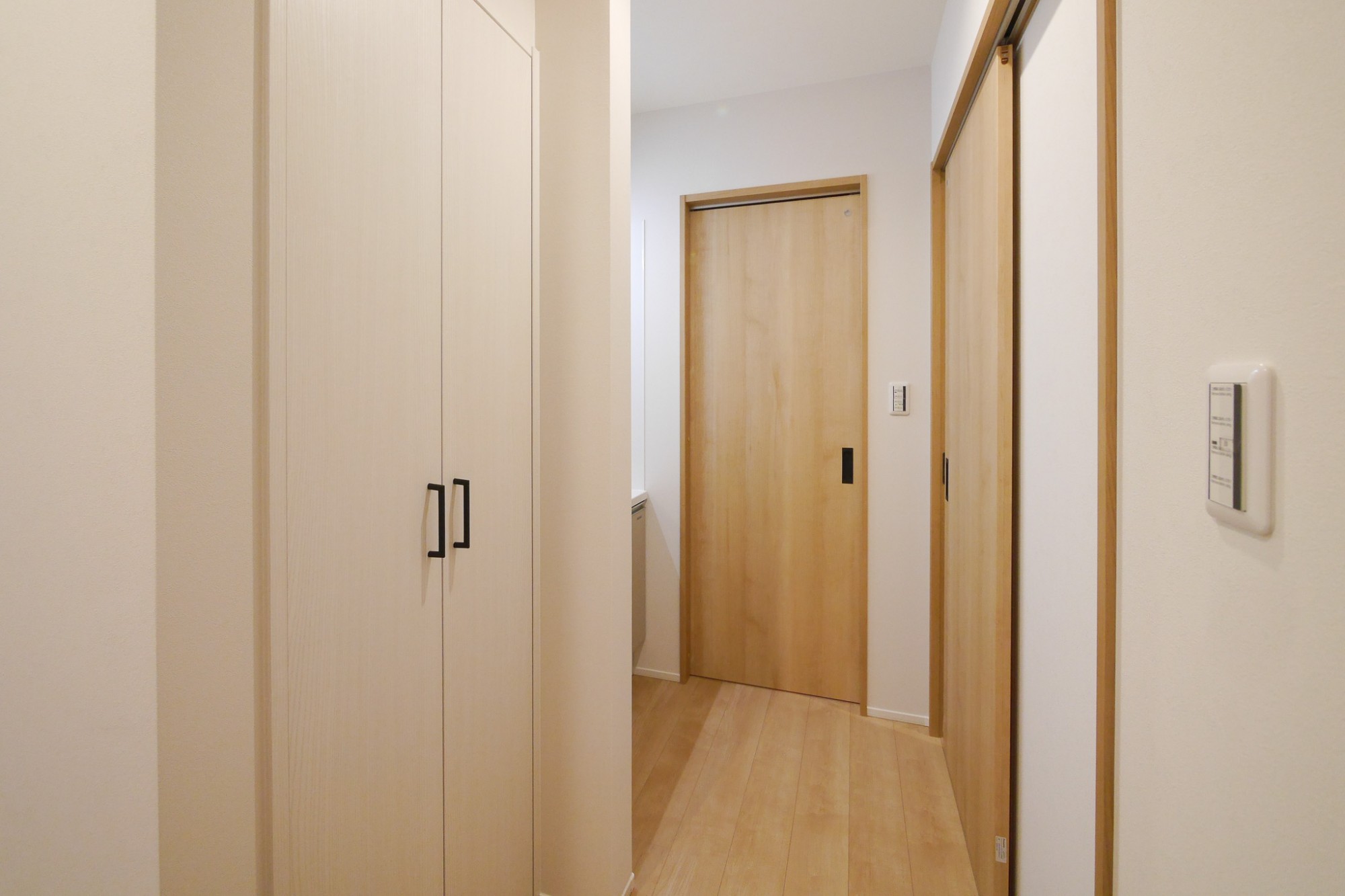 玄関から入ってすぐの廊下に設けられた、便利な収納スペース。