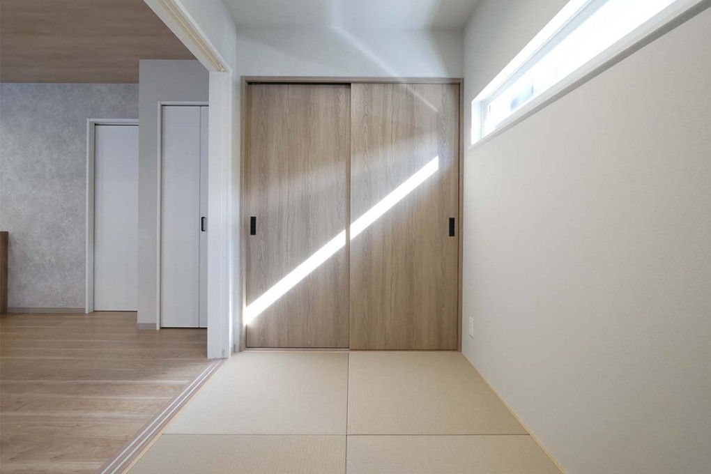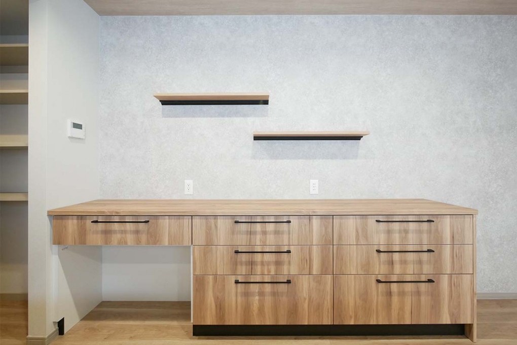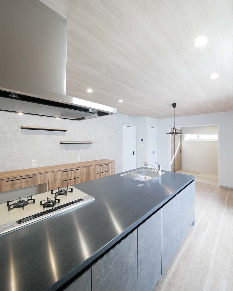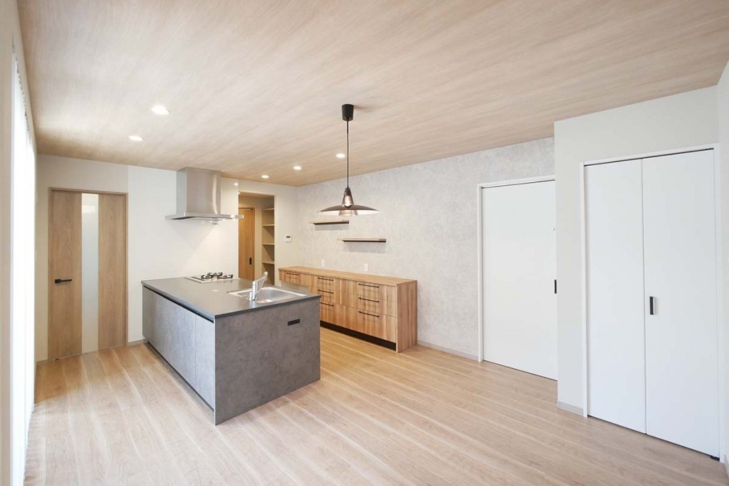 キッチンからリビングまで視線が抜ける、開放感のあるLDK。料理をしながら、家族の気配を感じられる心地よい空間です。