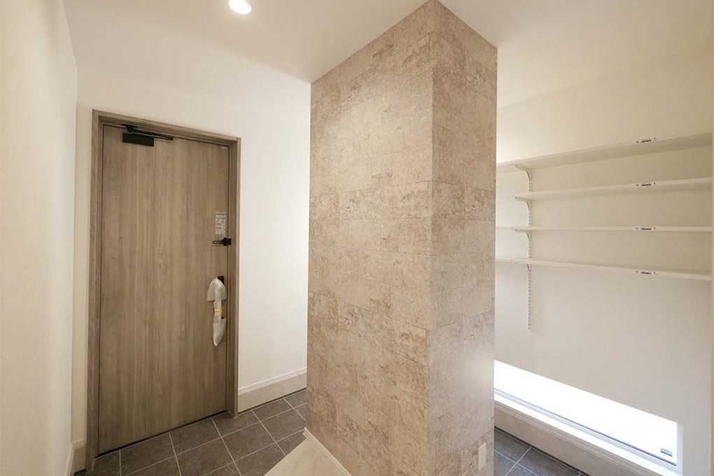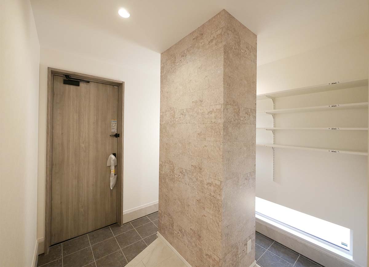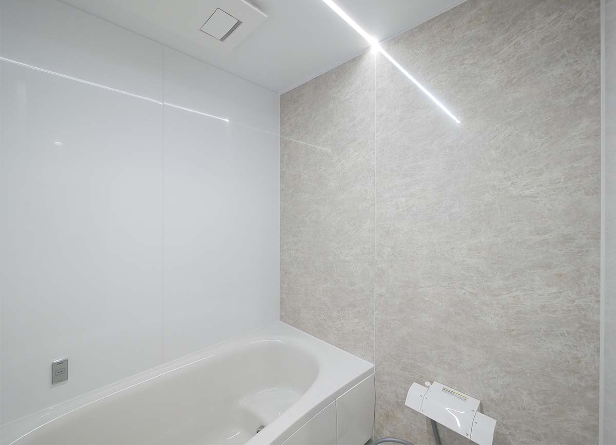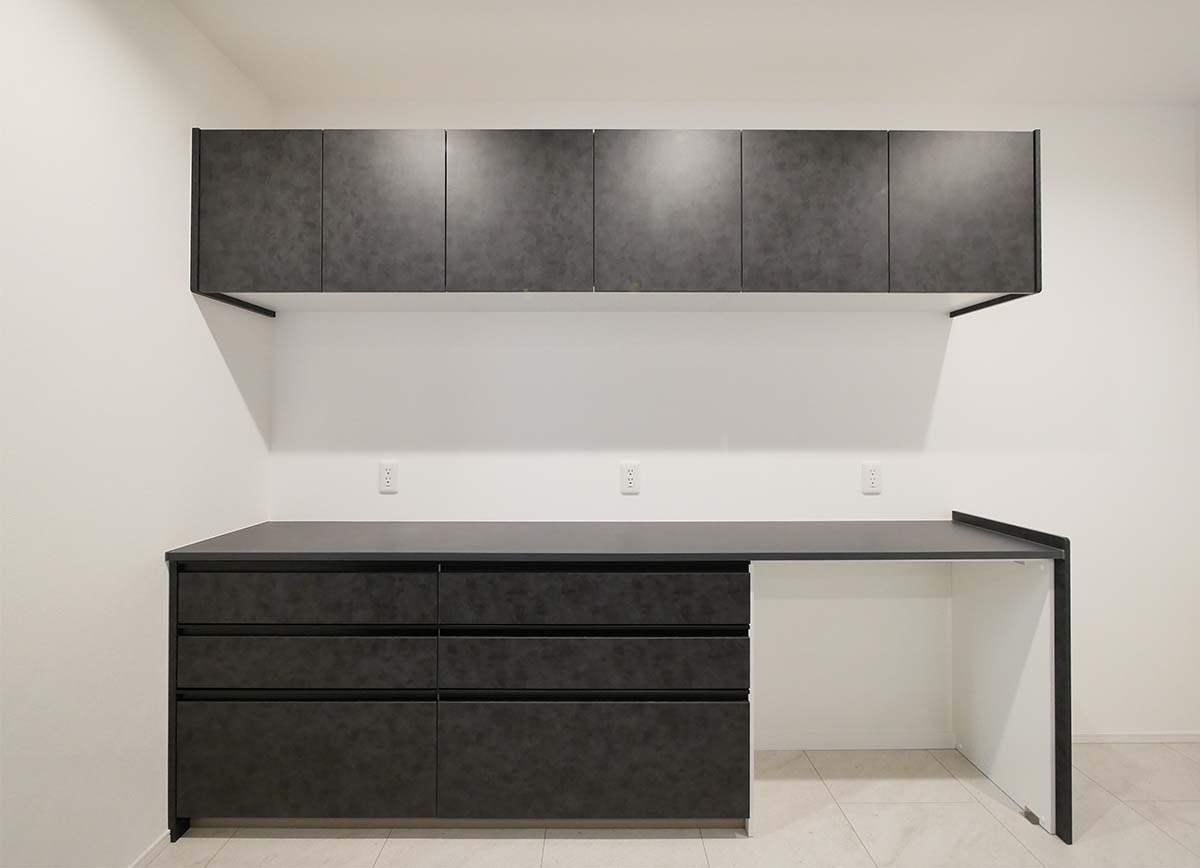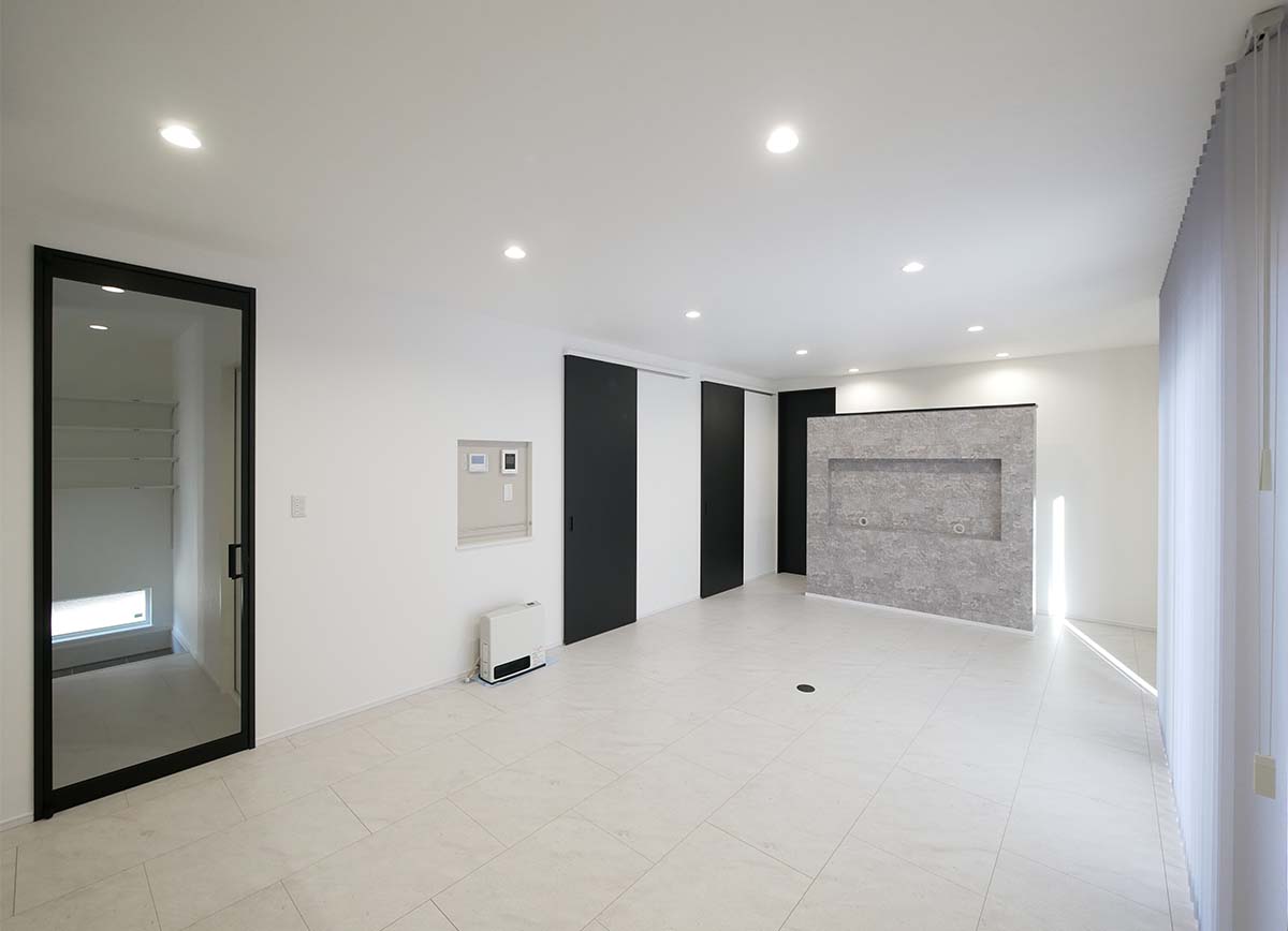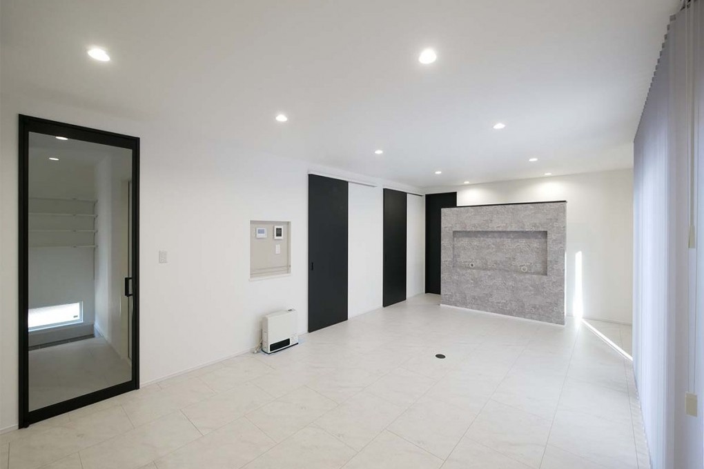 ブラックで統一したキッチンが映える、洗練された水廻り空間。すっきりとした動線で、毎日の家事を快適にサポートします。