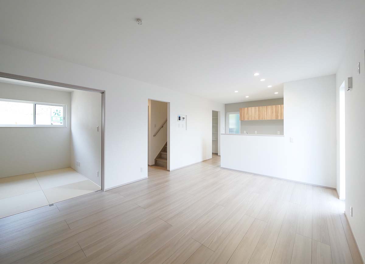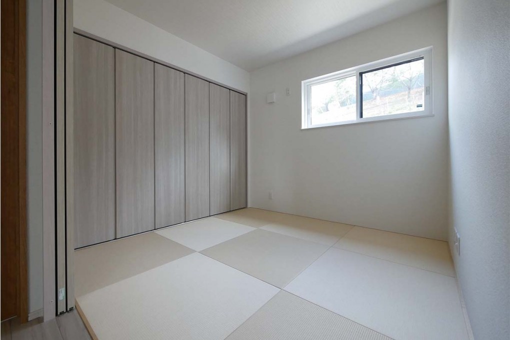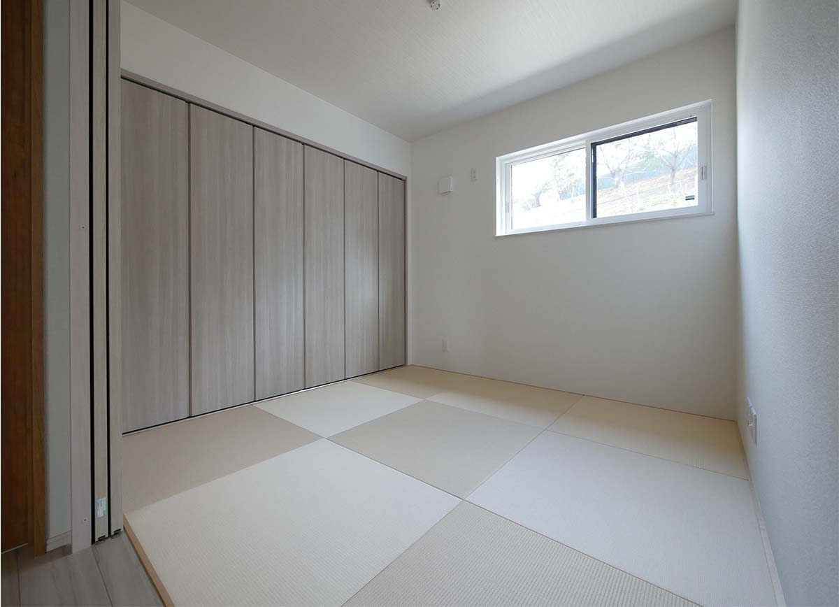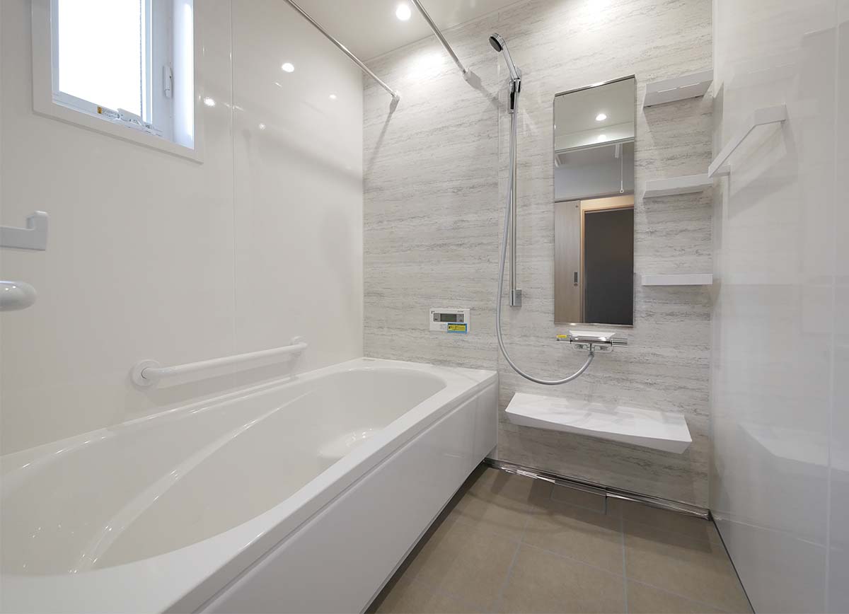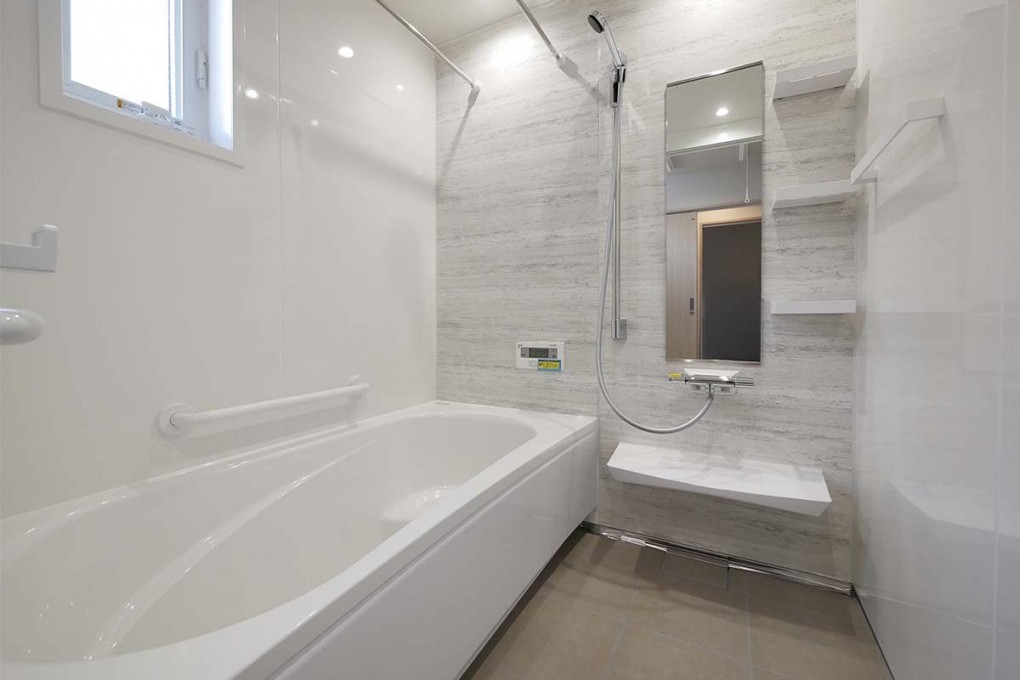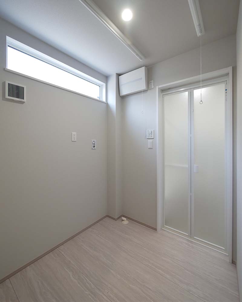 室内干しにも対応できる、清潔感のある脱衣室。換気や採光にも配慮し、毎日の家事が快適に進む空間です。