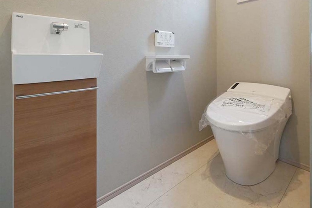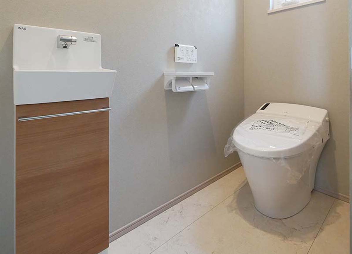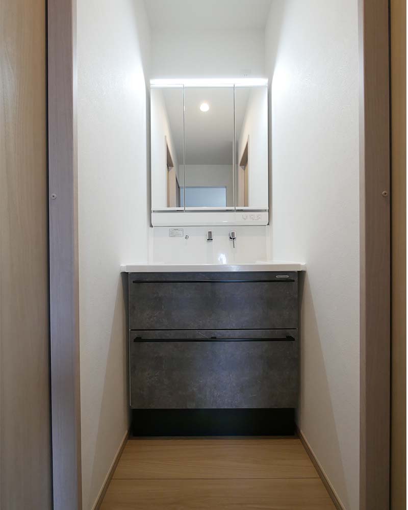 空間をすっきり見せる、壁付けタイプの洗面化粧台。コンパクトながら収納力も備え、毎日の身支度を快適にします。