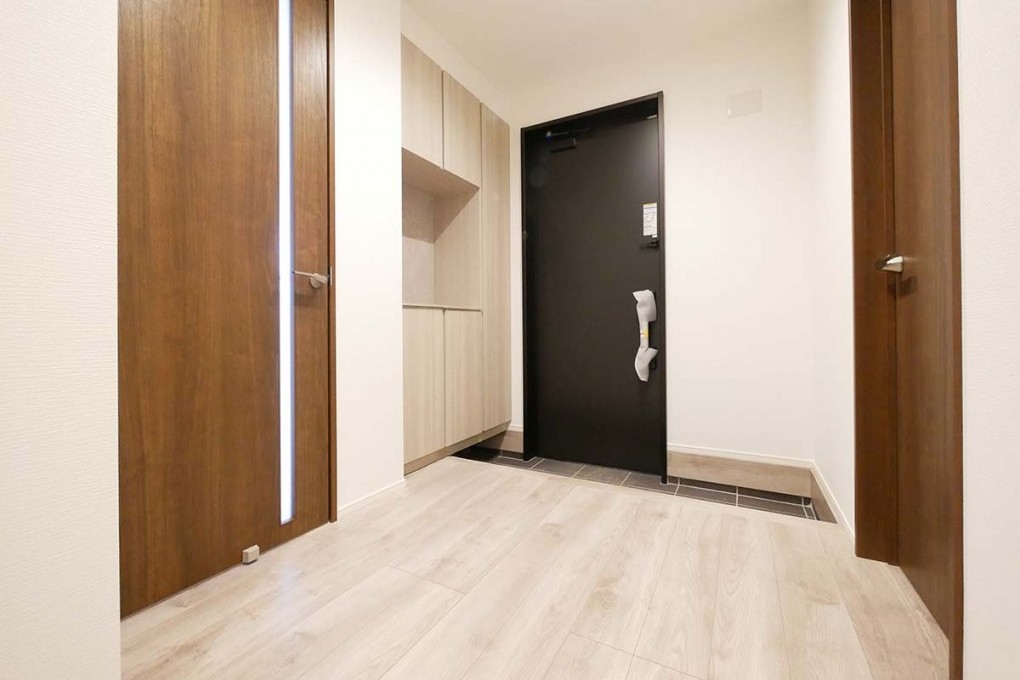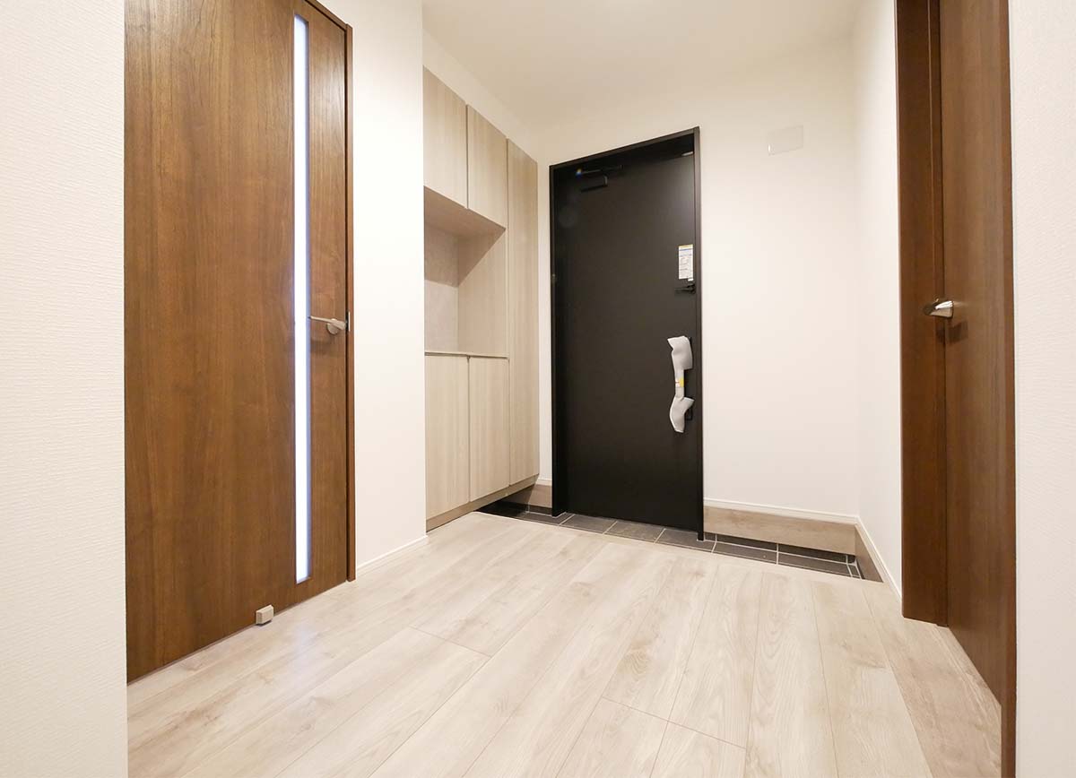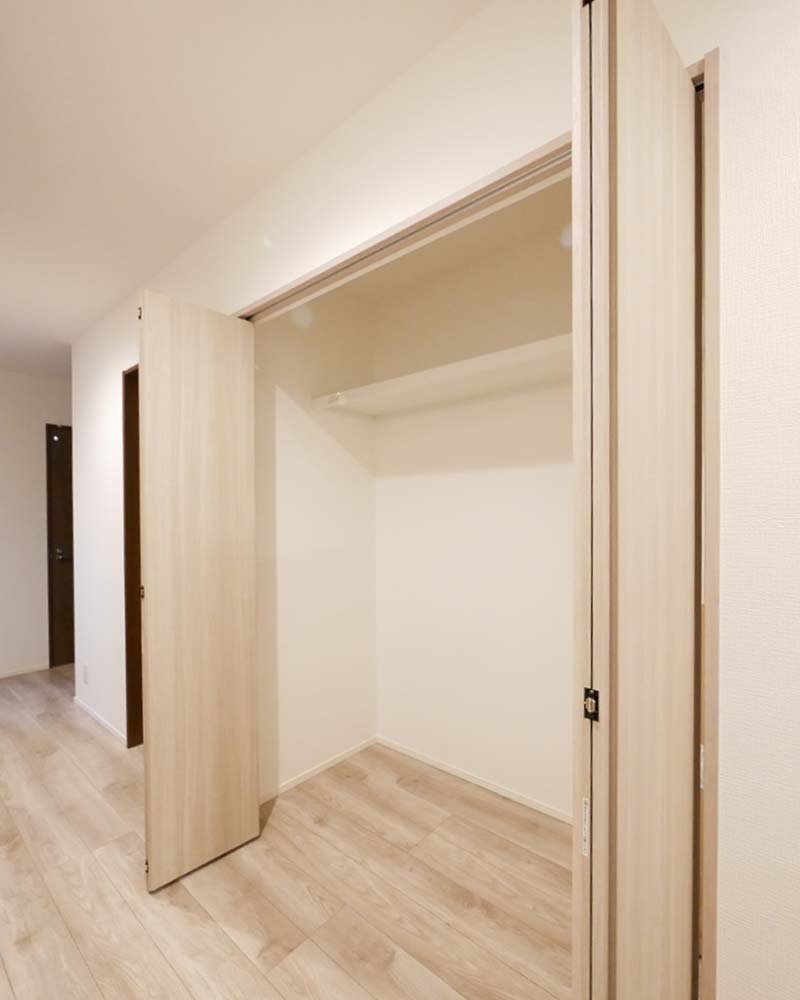 廊下に設けた収納スペースで、日用品やストックもすっきり整理。生活感を抑えながら、住まい全体をきれいに保てます。