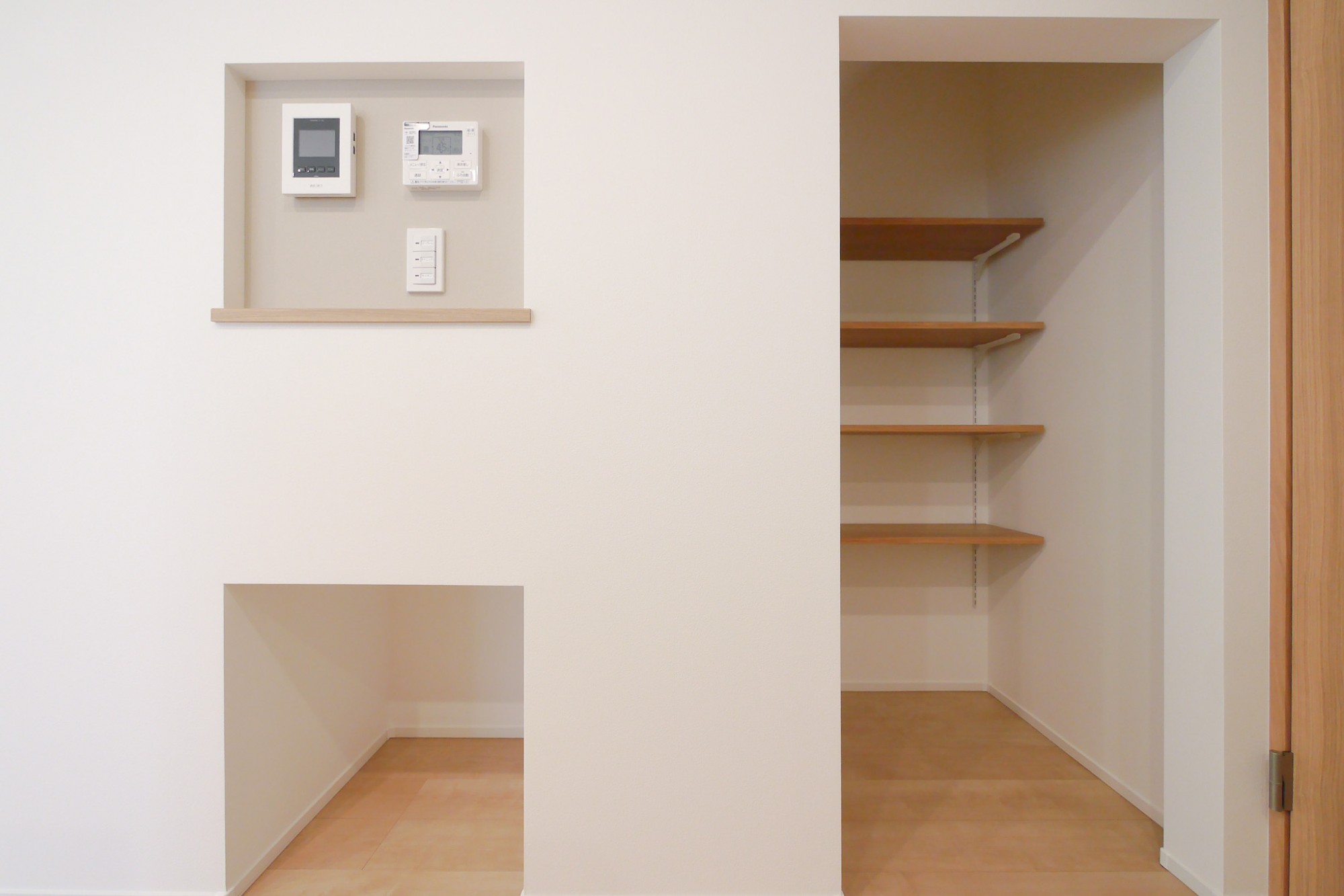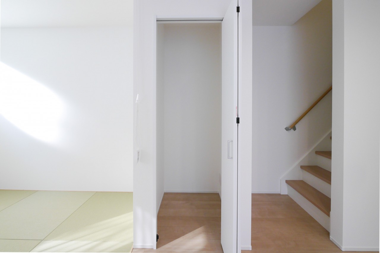 和室横に設けた収納は、必要な物をさっと収められるちょうどよいサイズ感。