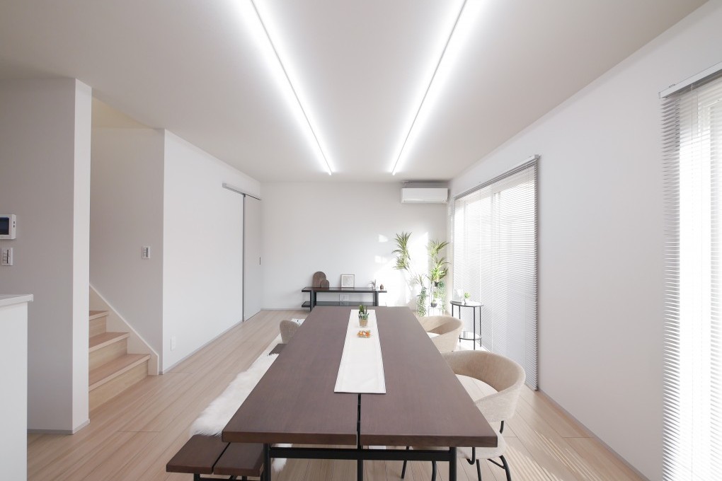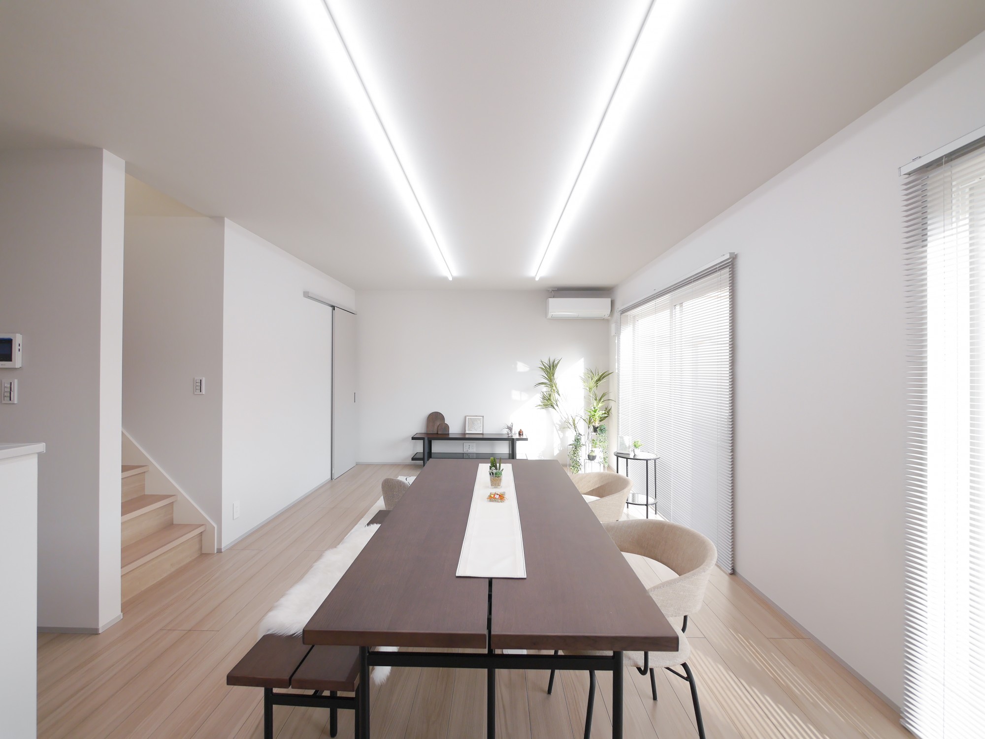 大きな窓から自然光が差し込む、開放感あふれるダイニング。