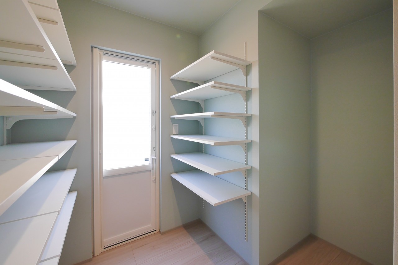 可動棚を備えたパントリー。