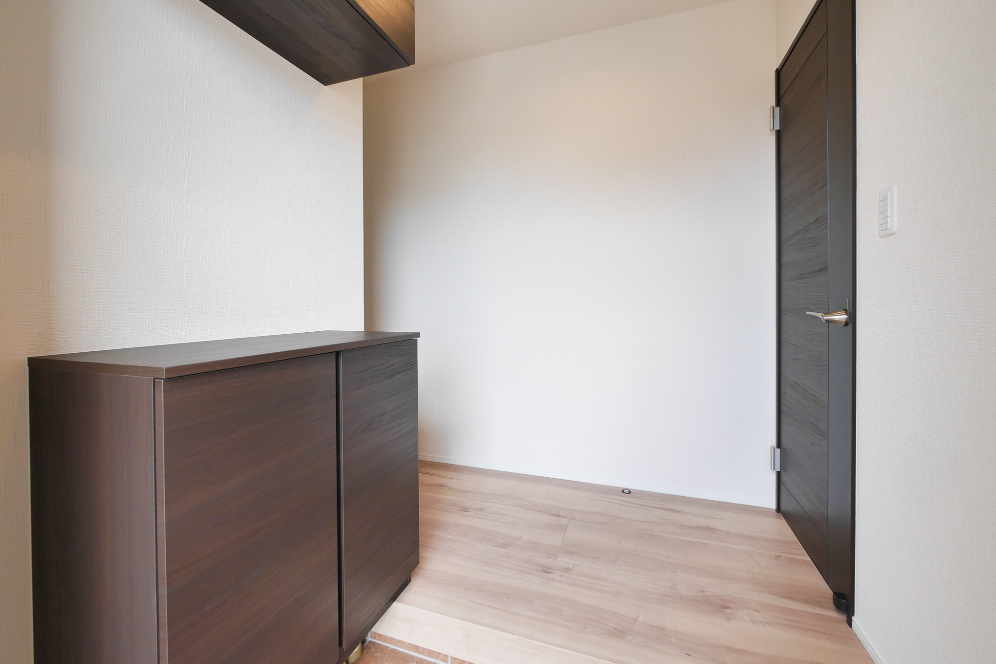 木目のぬくもりを感じる玄関空間。収納も備え、帰宅時もすっきりとした印象を保てます。