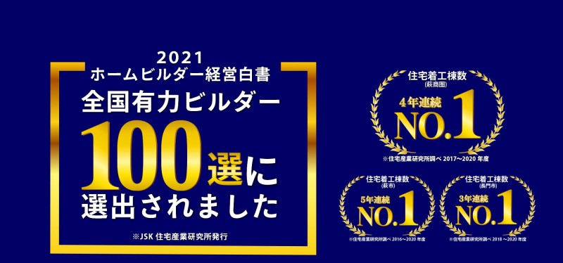 住宅産業研究所(JSK)の発行する「2021 TACTホームビルダー経営白書 全国有力ビルダー100選」に、地域密着型有力ビルダーとして選出され、掲載されました。